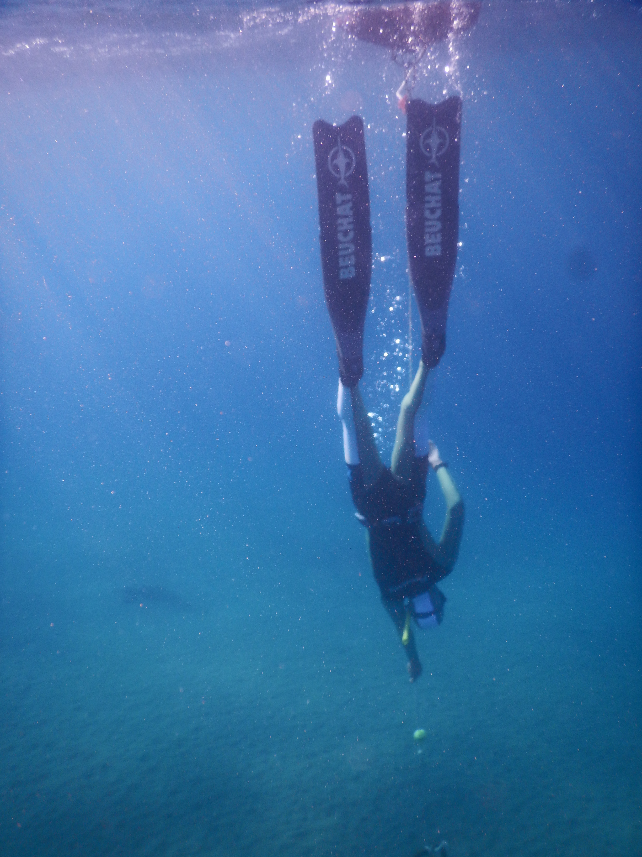 Lors de ce stage, j’ai essayé d’aller voir au fond de moi, j’ai découvert que mes oreilles se decompressent sans effort (mais quand elles veulent), que la mer est un chouette terrain de jeu pour l’apnée, que se sentir légère à 15m et se laisser remonter par Archimede sans aucun effort sont de chouettes sensations mais malgré ça il reste plein de blocages, de pensées à effacer, de sensations à apprendre, de pression à appréhender.