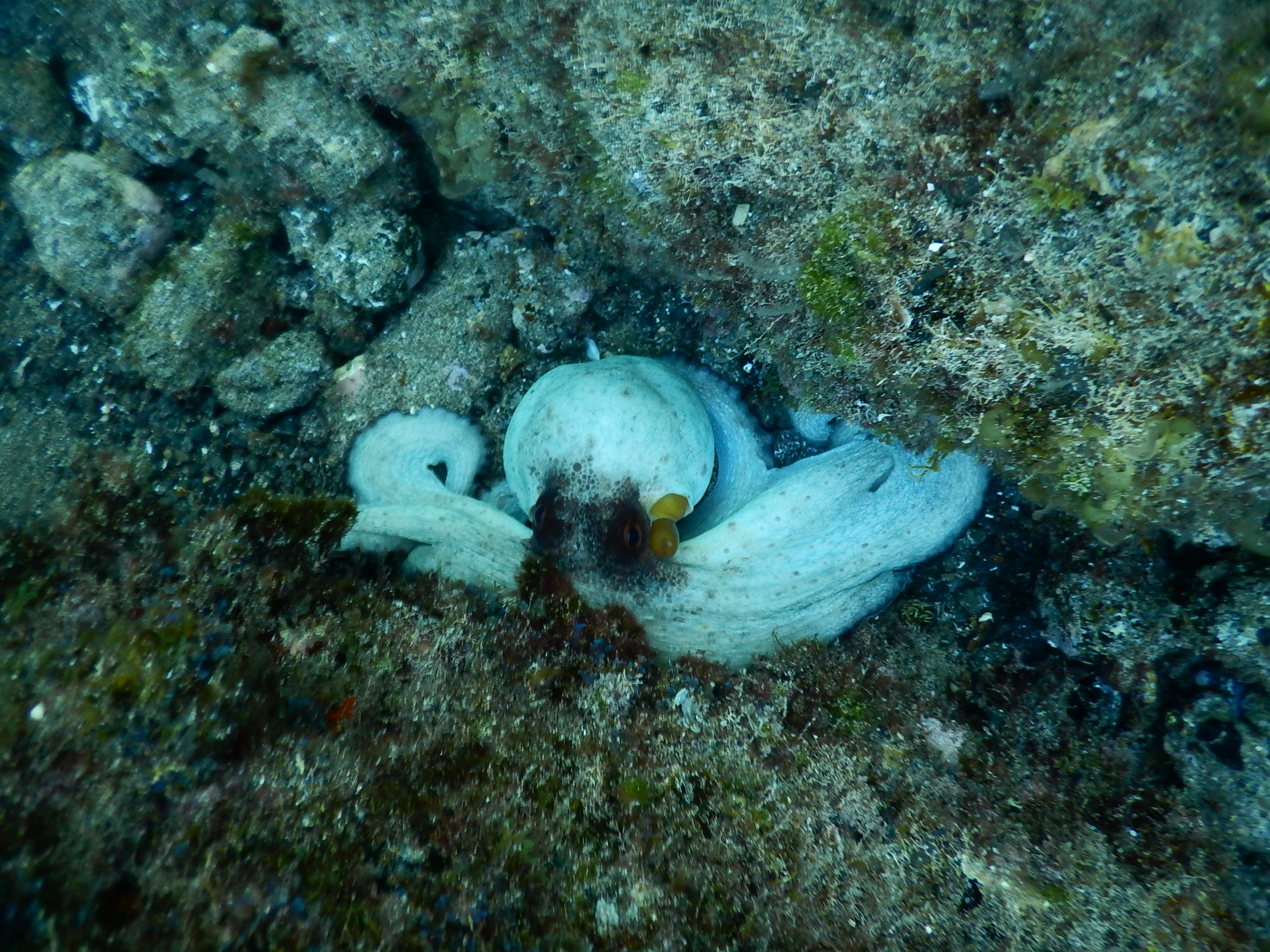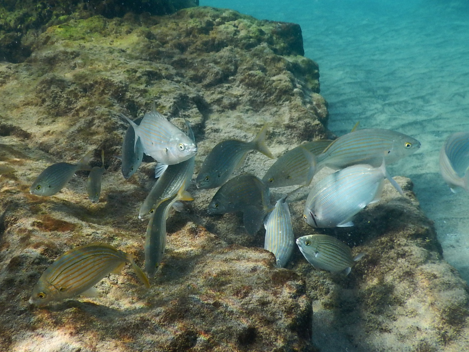 Entre 2 coups de palmes, avoir vu un poulpe, des bébés sars, des blennies, des saupes, des anémones, des sardines qui brillent telles des paillettes tout ça facilement observable en partant de la plage en snorkeling.