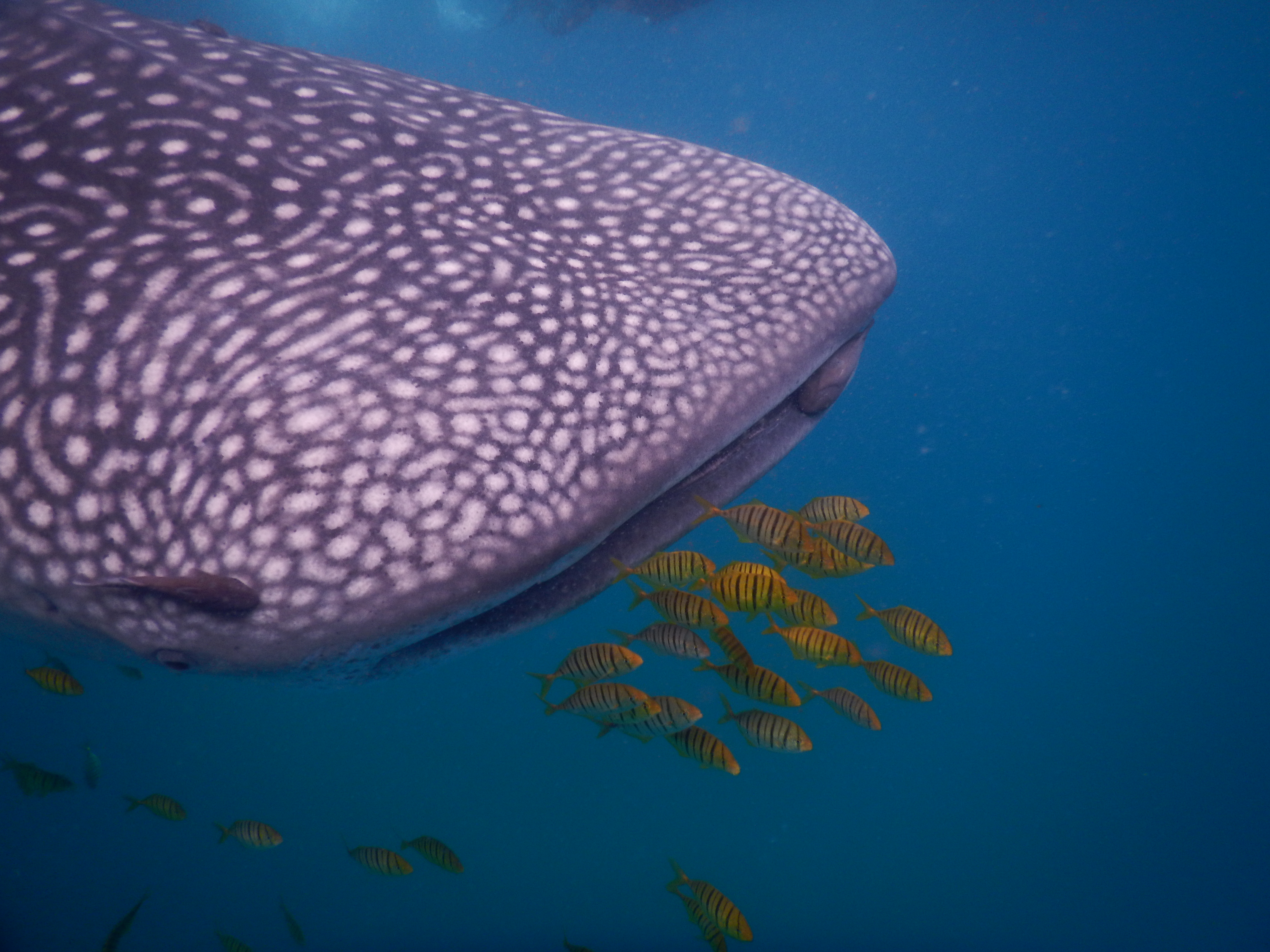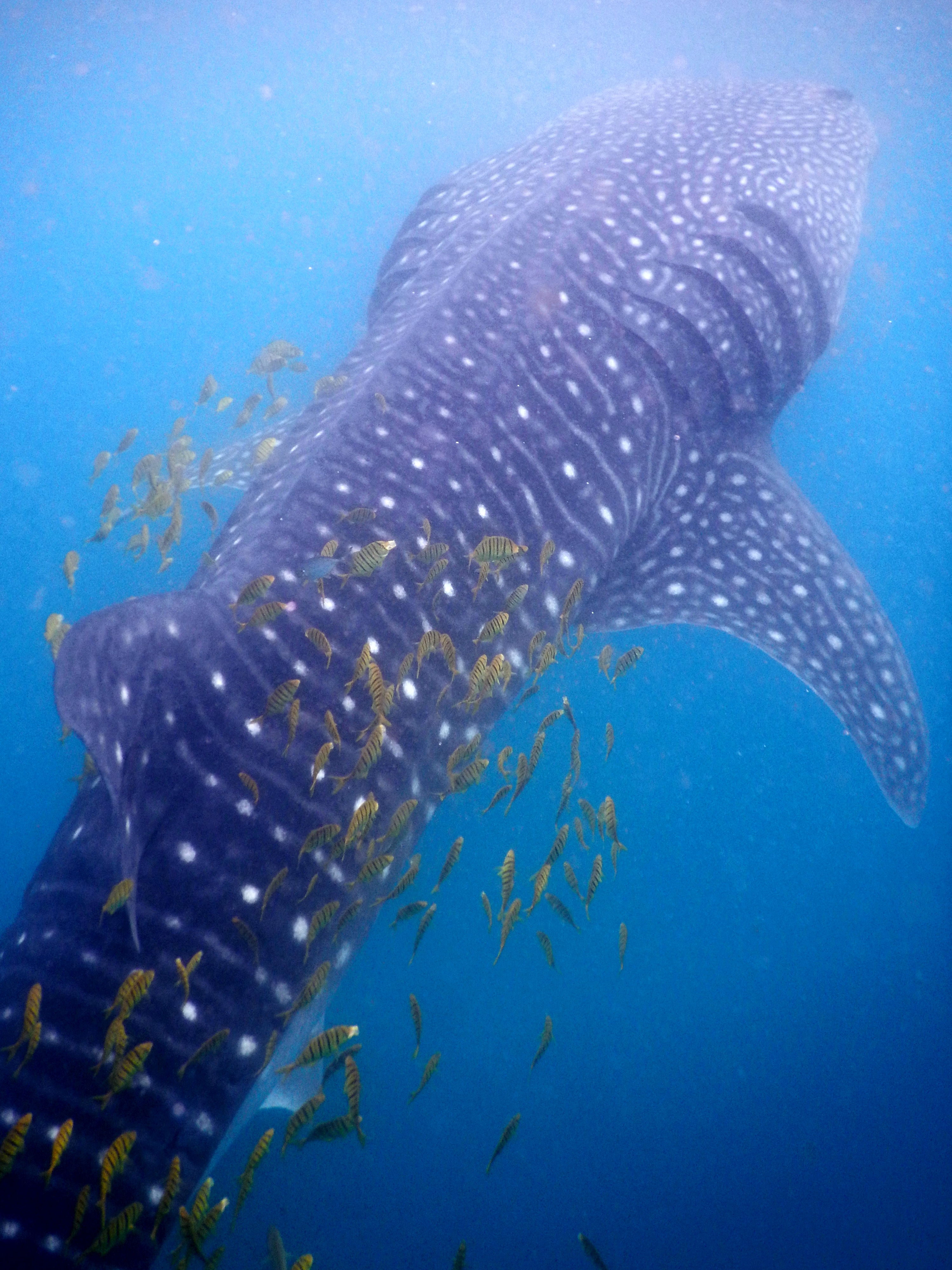 Revoir ces monstres des mers est juste incroyable et grandiose, et en plus cette fois un était entouré de poissons jaunes qui ressemblaient à des paillettes dorées. Magique!